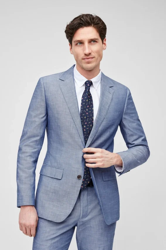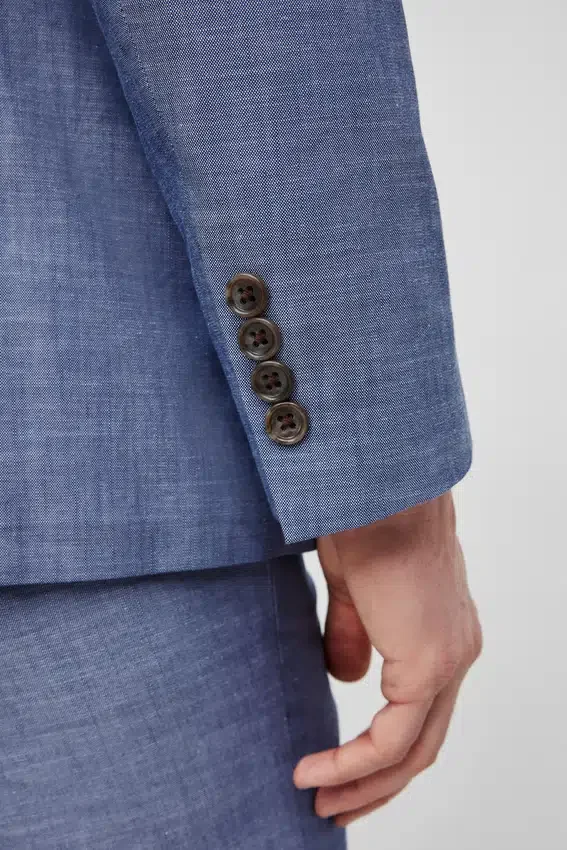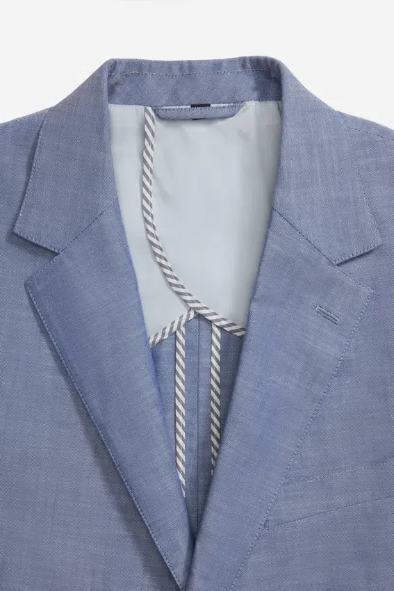 Características de la chaqueta: solapa en V de 8,25 cm | parcialmente forrada | bolsillos con solapa | cruz simple de 2 botones | botones no funcionales en los puños | doble abertura trasera | confección ligera | forro de fieltro en el cuello | presilla para colgar | bolsillos interiores de ojal