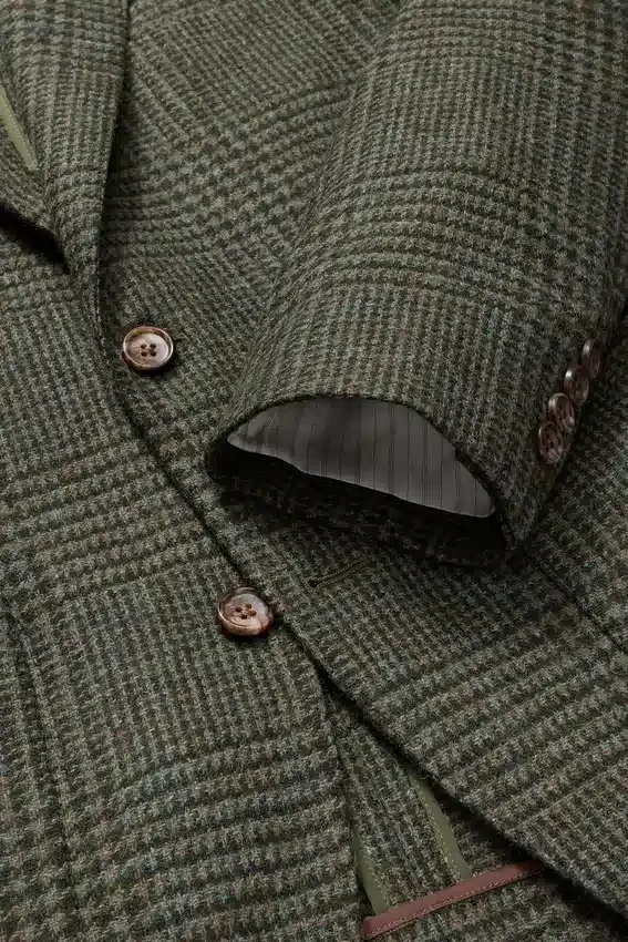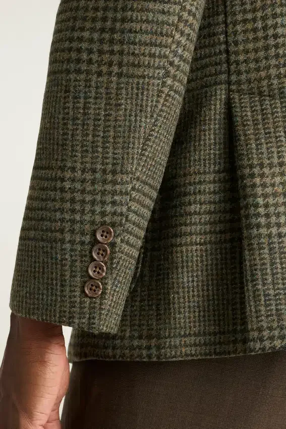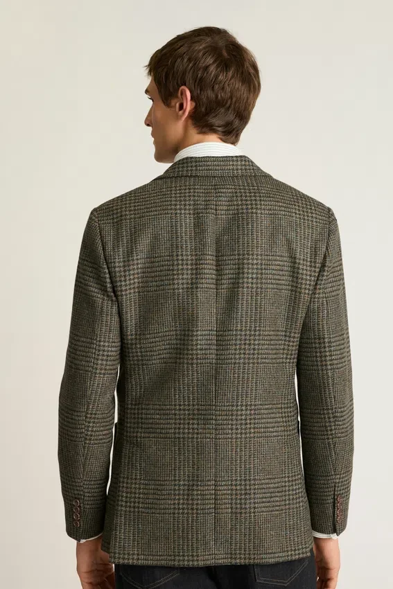 Tejido de Abraham Moon | Bolsillos de parche | Interior sin forro con ribete en las costuras | Botones decorativos en los puños | Forro en las mangas | Doble abertura trasera | Bolsillos interiores y presilla para colgar