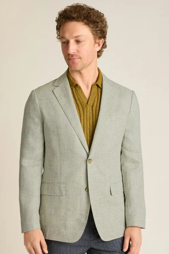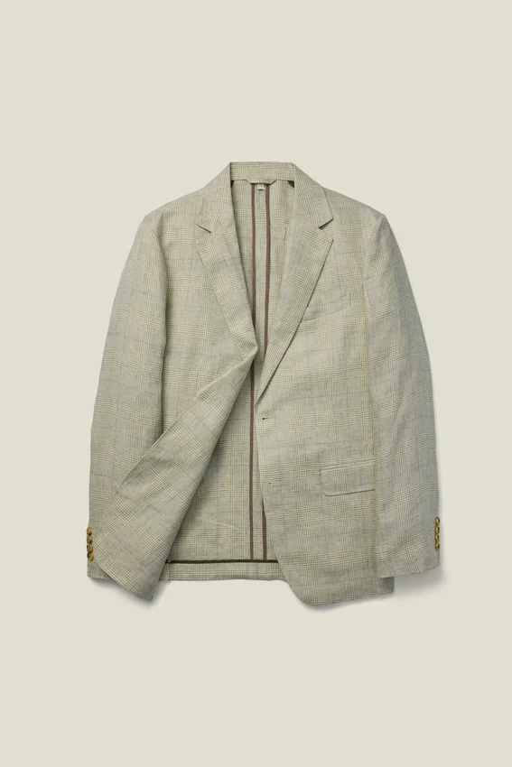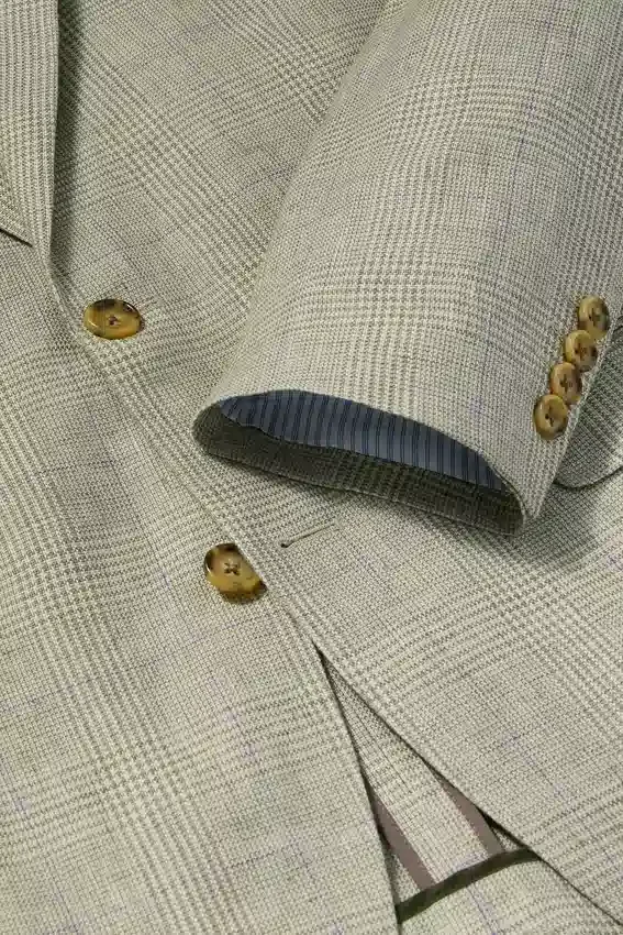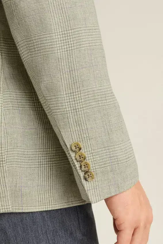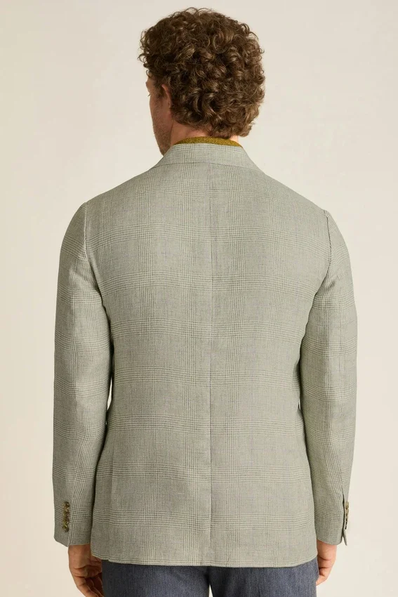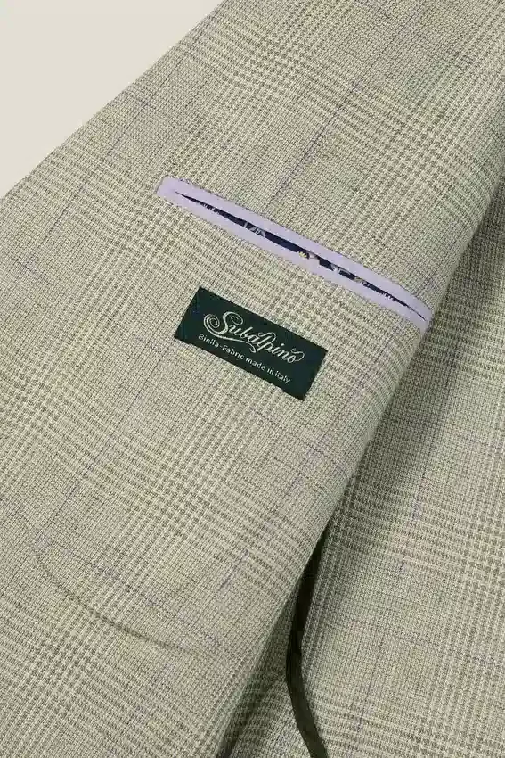 Tejido de Subalpino | Bolsillos con solapa | Interior sin forro con ribete en las costuras | Botones decorativos en los puños | Forro en las mangas | Doble abertura trasera | Bolsillos interiores y lazo para colgar | El pin de la solapa es extraíble